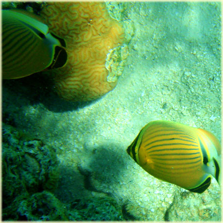 Our lagoon is teeming with many colourful marine life. Above is a kokiri (trigger fish)